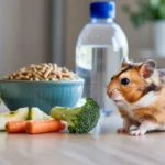 Comedouros de cerâmica pesada são ideais, pois não viram facilmente. Para a hidratação do hamster, o bebedouro do tipo bilha (com esfera na ponta) é o mais higiênico, mantendo a água limpa e sempre disponível.